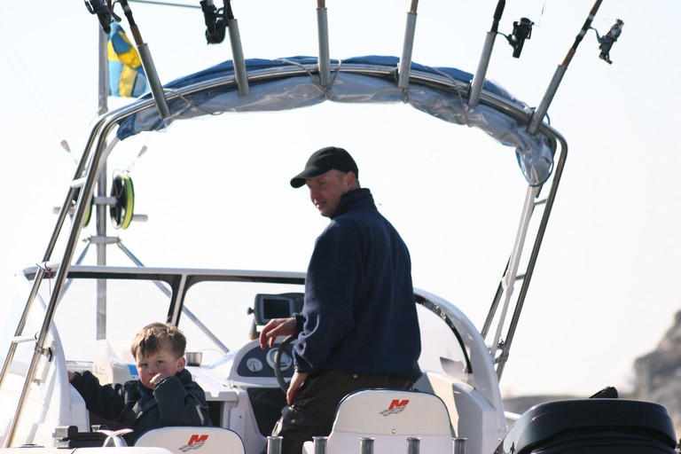 Noa och Mattias i båten.