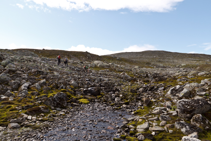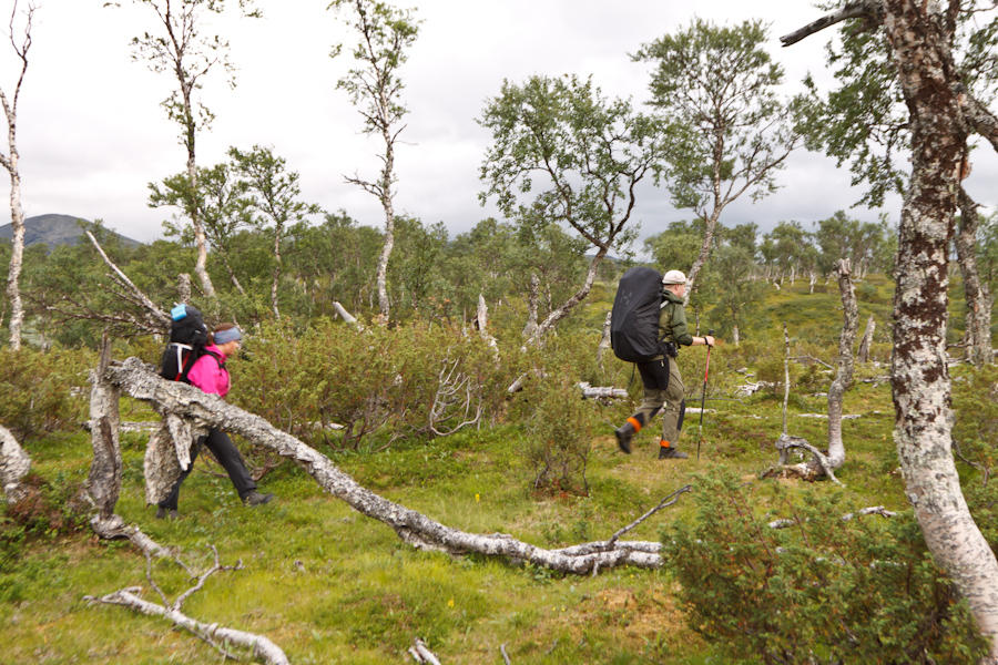 Jag, Lars, Karin och Daniel gjorde en så gott som helt oledad vandring denna sommar. Vi utgick från Storulvån och siktade in oss på övernattning första natten i Tjallingdalen. Därifrån gick vi vidare mot Härjångsfjällen men bara korsade leden mellan Gåsen och Sjtäntja för att övernatta vid Lievkisåajjantjåanne. Nästa dag gick vi ned i Härjånsdalen och följde bäcken upp mot dalen mellan Stora Härjångsstöten Stråahpatjaerhvie. Här övernattade vi i två dagar och tog en topptur upp på Stora Härjångsstöten. Vädret slog om så vi gick till Gåsenstugorna och tog in där för att nästa dag gå leden till Storulvån.